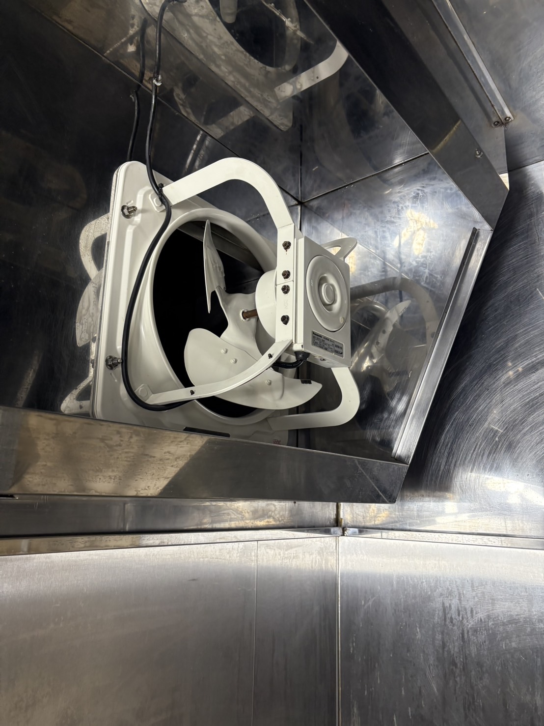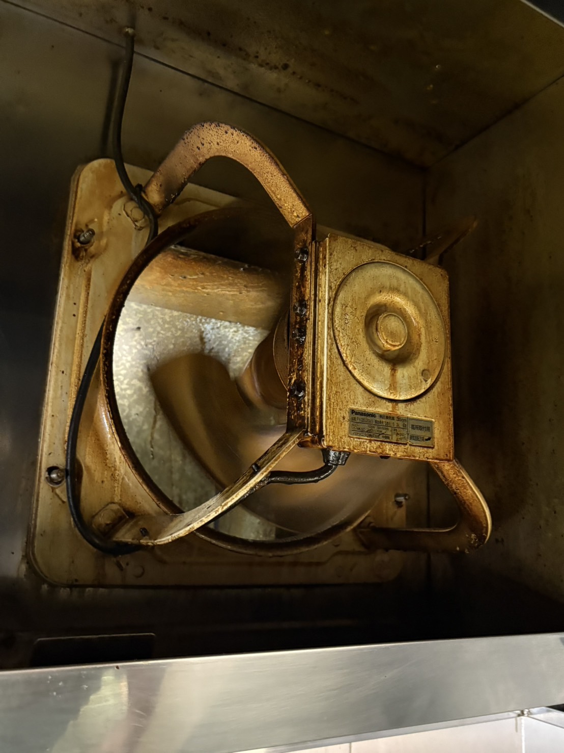 居酒屋の換気扇にこびりついた頑固な油汚れを丁寧に除去しました。